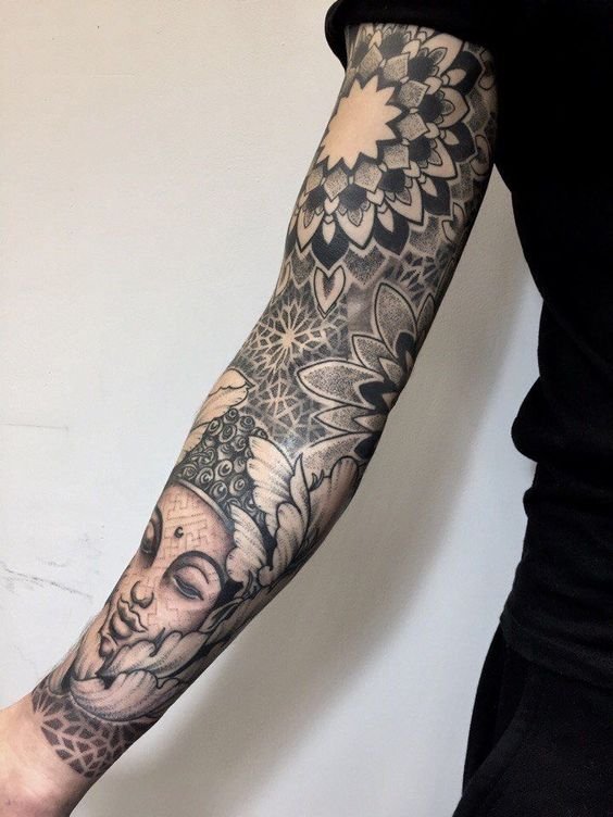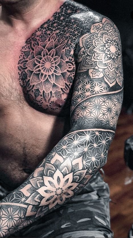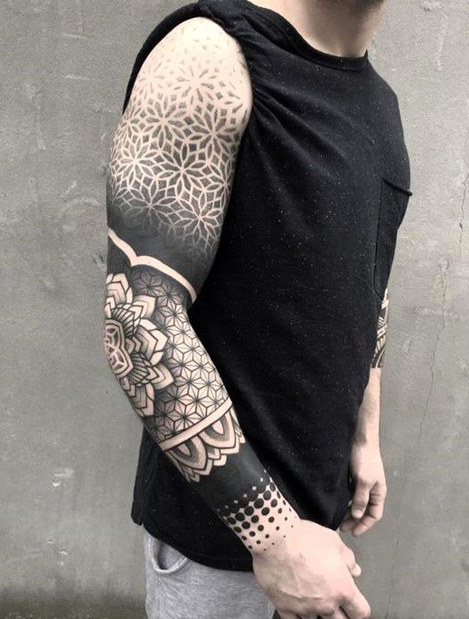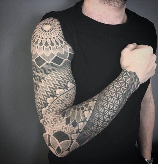 - Dotwork: See stiil põhineb punktidel, mis moodustavad mustreid ja kujutisi. See näeb eriti efektne välja varruka mõõtmetes, võimaldades luua keerukaid ja detailseid mustreid.
