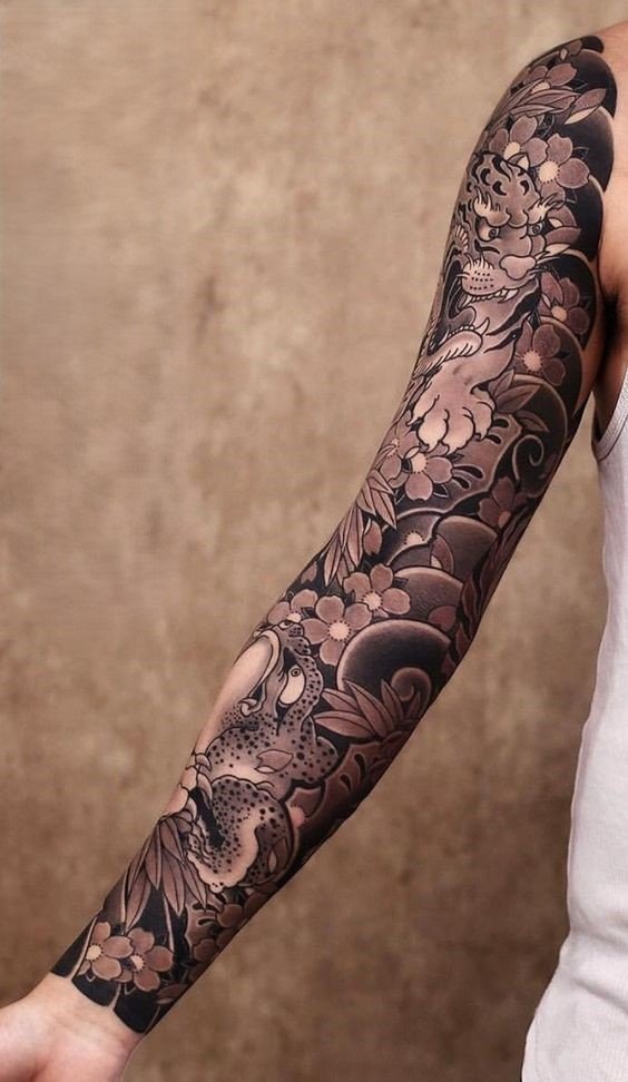 - Jaapani stiil (Irezumi): Täielikuks kätetätoveeringuks valitakse tihti traditsioonilisi jaapani motiive – draakonid, karpkalad, kirsipuuõied ja mütoloogilised olendid. Erksad värvid ja sümbolism annavad teosele erilise sügavuse.