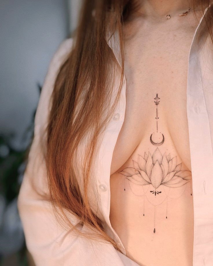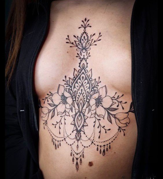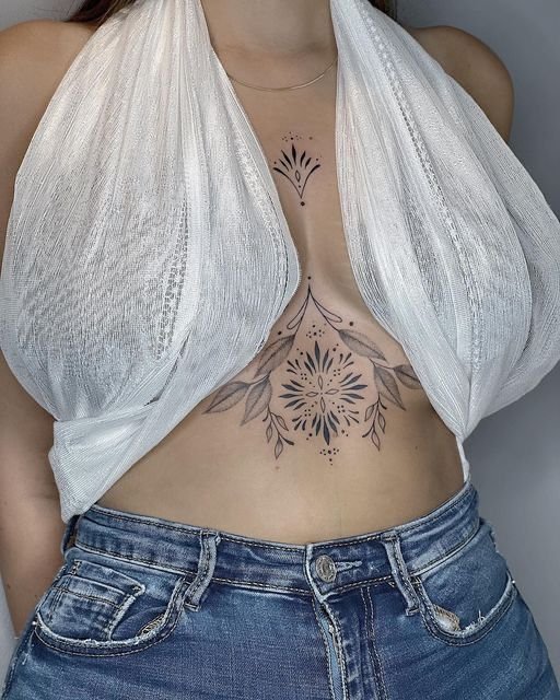 - Järgib keha loomulikke jooni: Rinnaluu all olev tätoveering järgib keha loomulikke kurve, luues harmoonilise ja esteetiliselt meeldiva disaini. Kunstnikud kasutavad sümmeetriat, et tugevdada tätoveeringu üldmuljet.