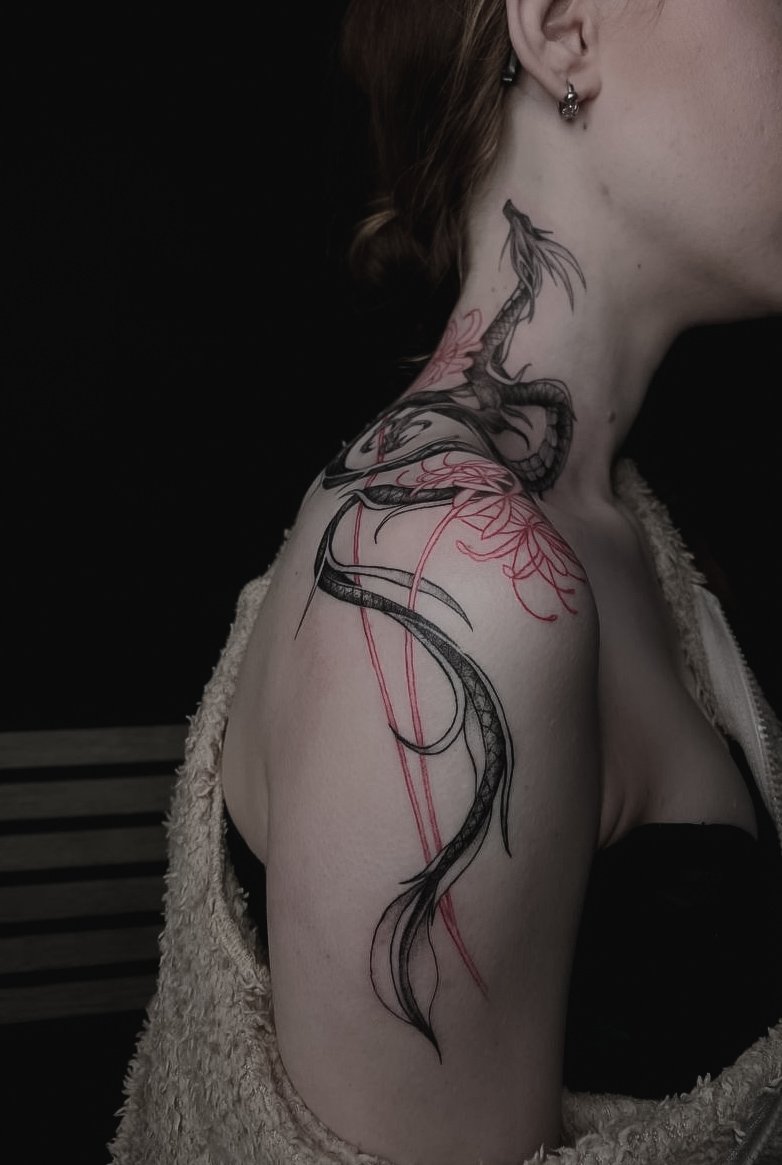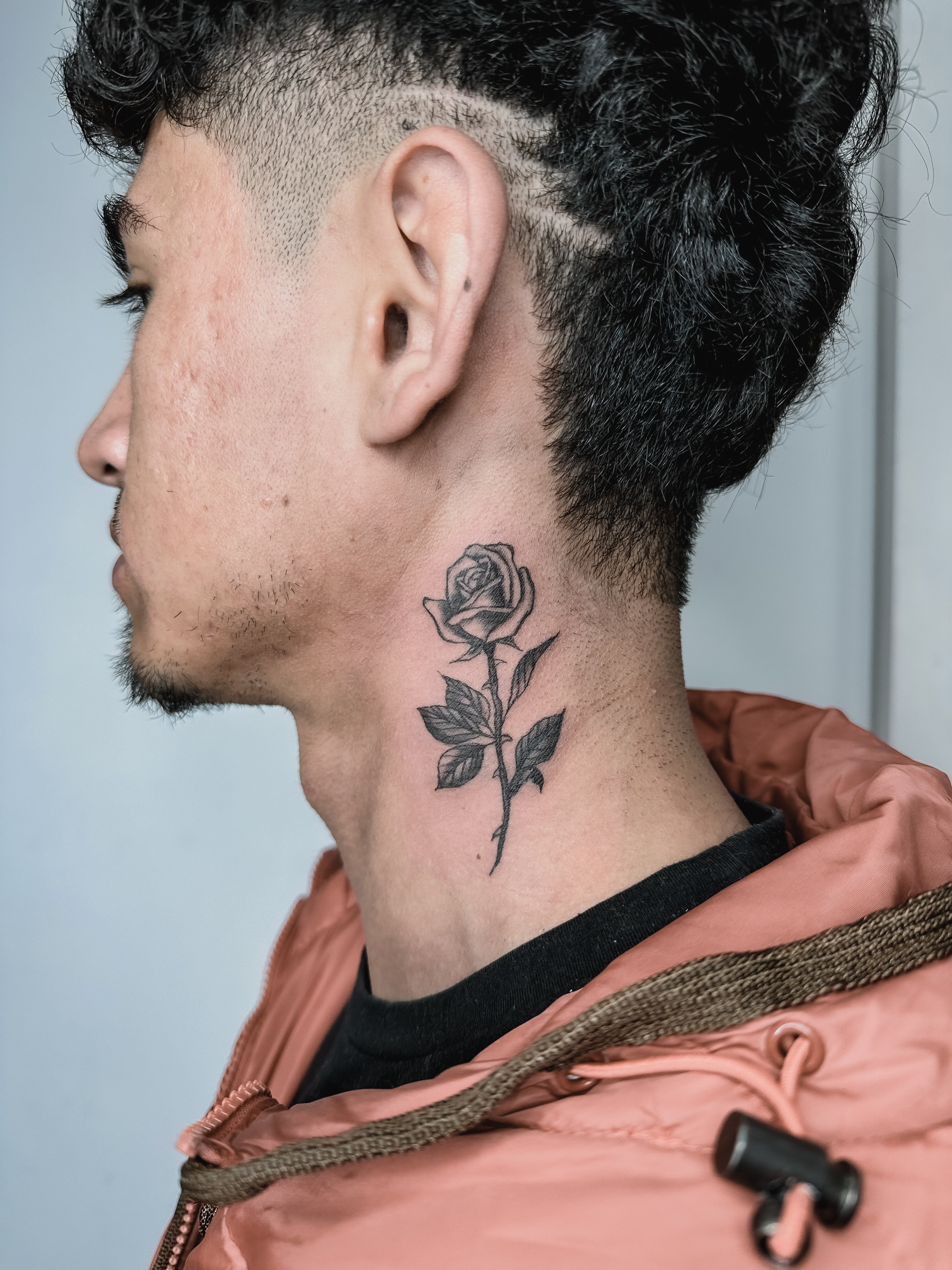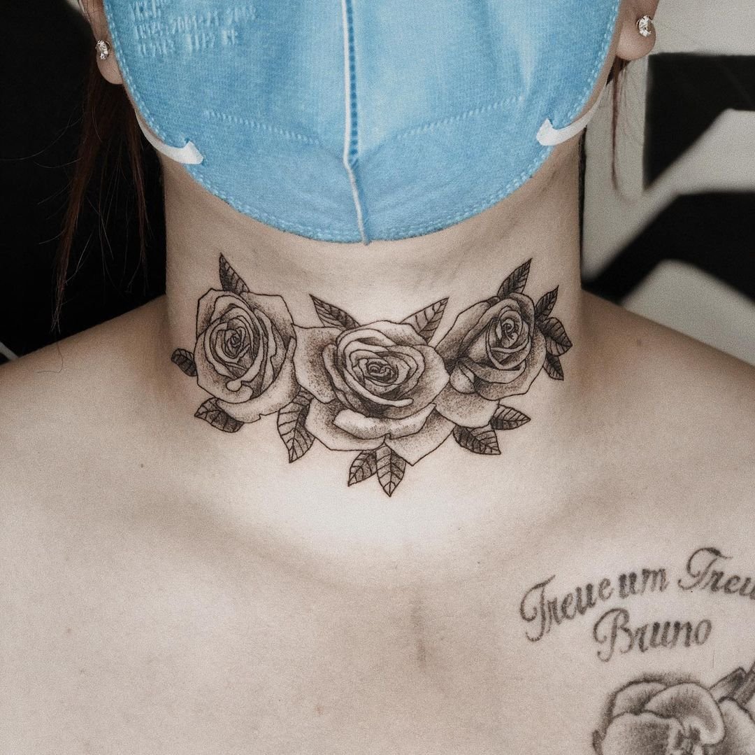 - Lilled ja taimed: Lillemotiivid kaelal sümboliseerivad ilu, naiselikkust ja looduse jõudu. Roosid, liiliad, lootosed – kõik need lilled võivad kanda sümboolikat, mis on seotud armastuse, puhtuse või vaimse kasvuga. Sageli tehakse sellised tattooed õrnas toonis ja täpsetes, elegantsetes vormides.