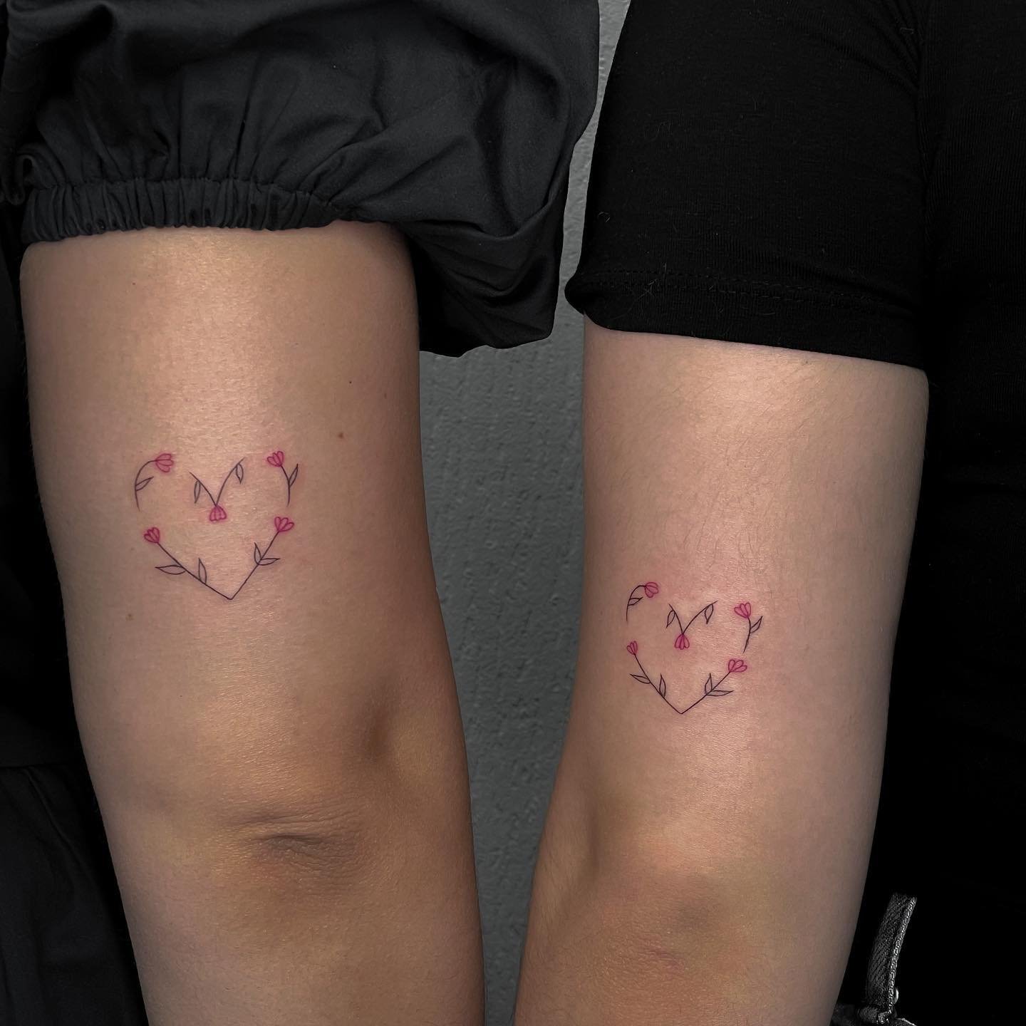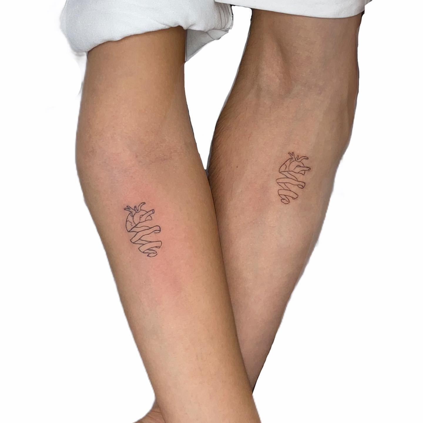 - Hearts: A classic symbol of love. Matching hearts can be done in various styles, from minimalism to realism, and can include additional elements such as initials or significant dates, adding a personal touch.