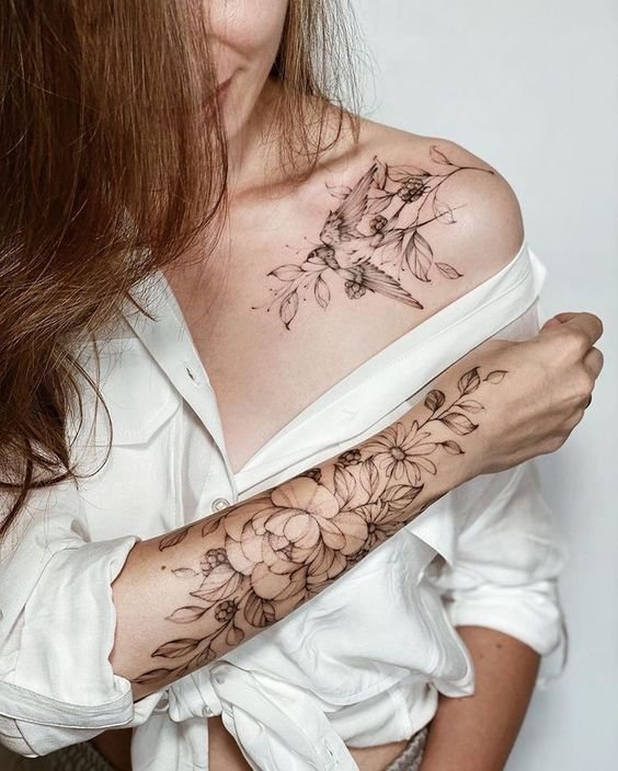 - Chest and Collarbones: More intimate zones that allow for tattoos with special personal meaning. Elegant designs on the collarbones or under the breast can look very feminine and graceful.
