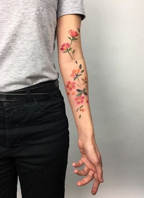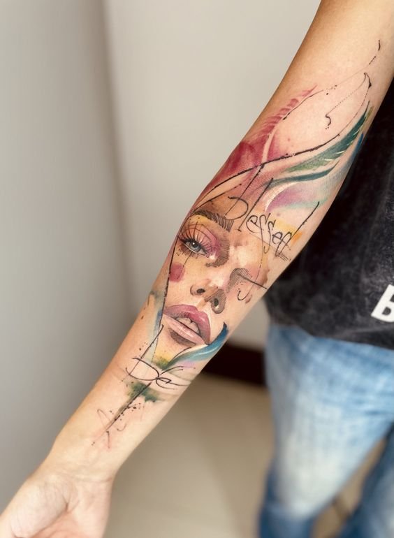 - Watercolor Style: This style has won many hearts with its softness and airiness. Watercolor tattoos resemble paintings made with paints, featuring smooth color transitions and blurred contours. They are perfect for images of flowers, birds, butterflies, creating an impression of lightness and romance.