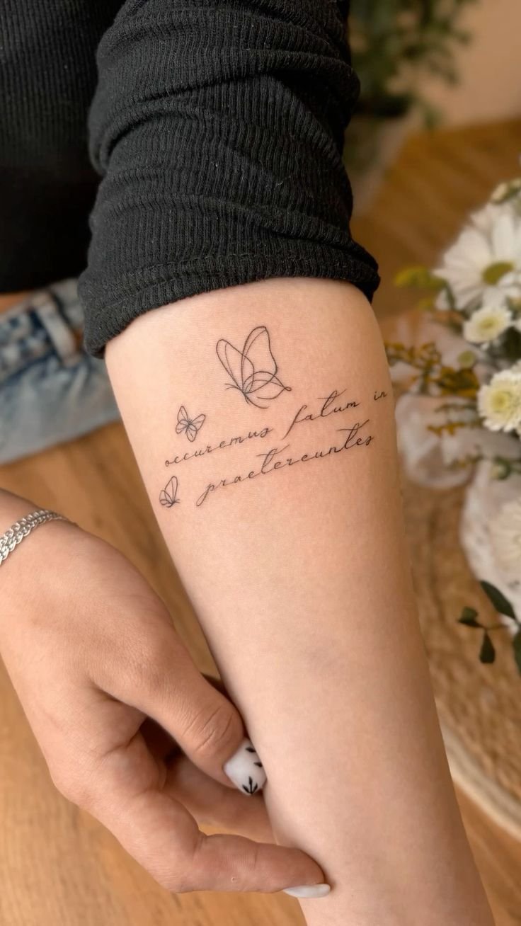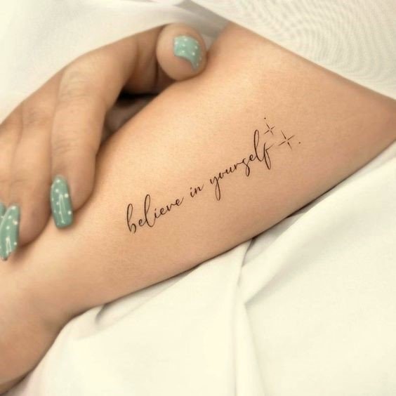 - Inscriptions: Quotes, phrases, or important dates are a way to imprint words on your skin that inspire, support, or remind you of significant events and people in your life. Inscriptions can be executed in various fonts and languages, adding individuality and style.