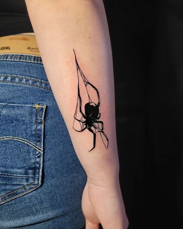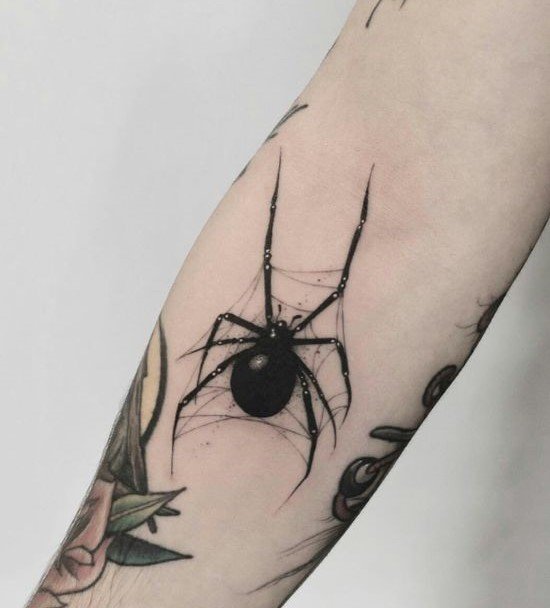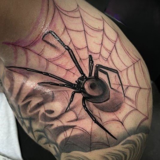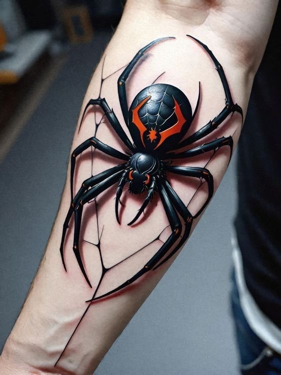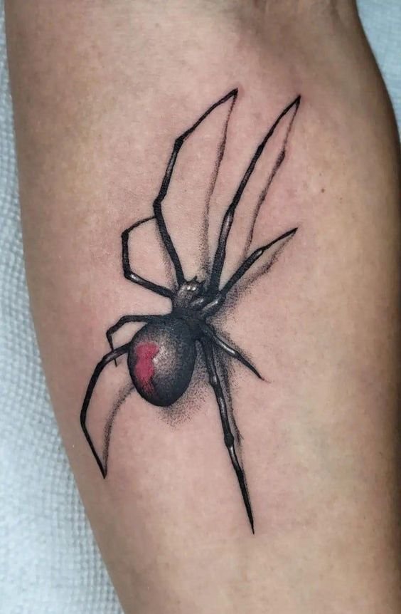 - One of the most recognizable and popular spiders in tattoos is the black widow. This spider is known for its striking red pattern on a black body, making its image very effective. The black widow symbolizes danger and female power, as females of this species often eat males after mating. A black widow tattoo can embody strength, independence, and sexuality, as well as warn of hidden danger.