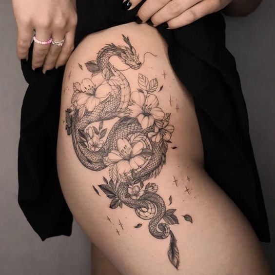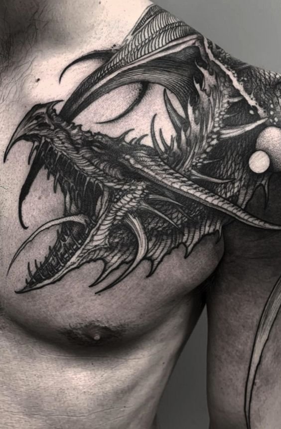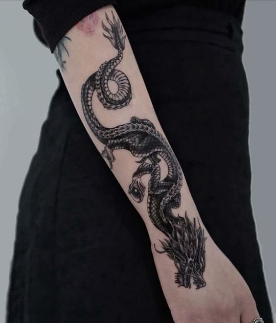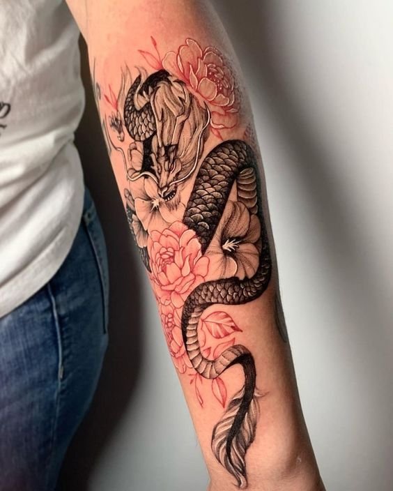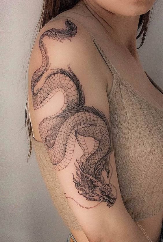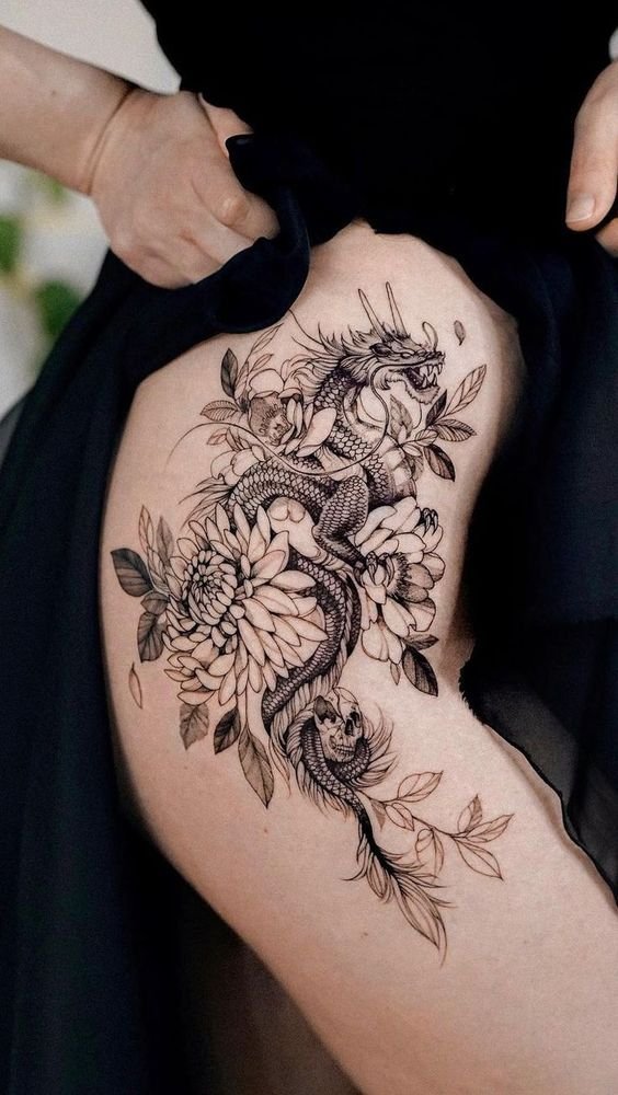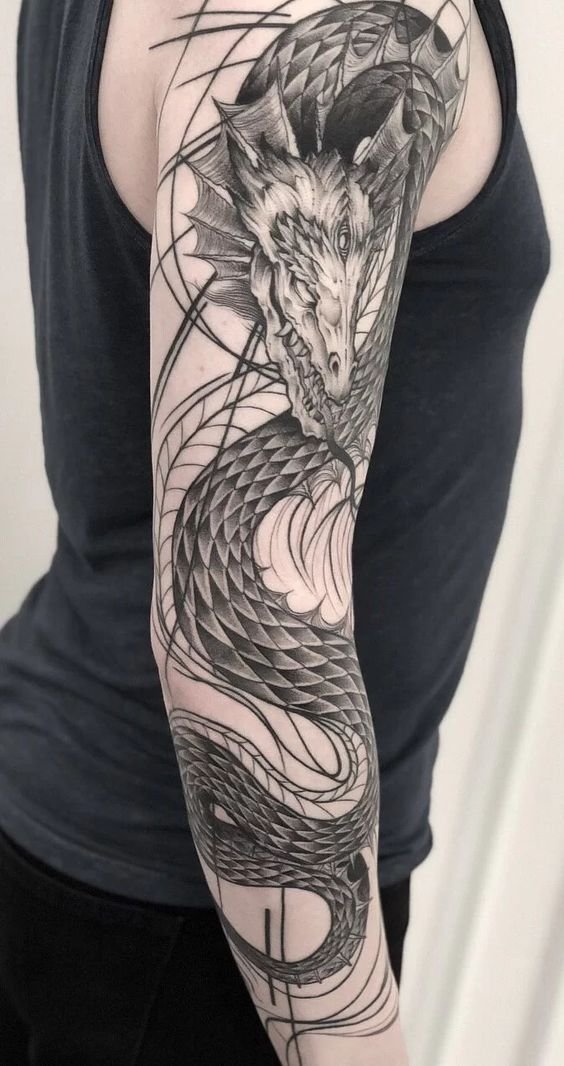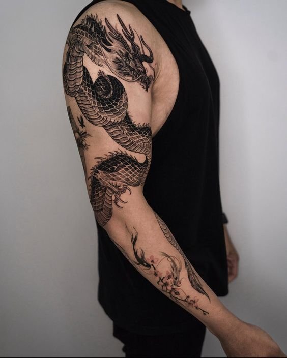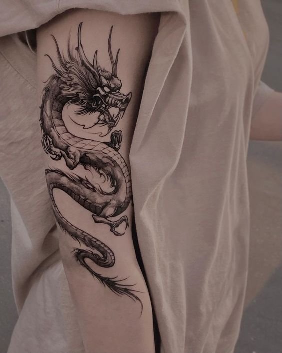 Many individuals opt for expansive designs on the back or chest to showcase the dragon's intricate details and majestic presence fully. These larger canvases allow for the inclusion of various elements like fire, water, clouds, or floral motifs, commonly associated with dragons across different cultures.