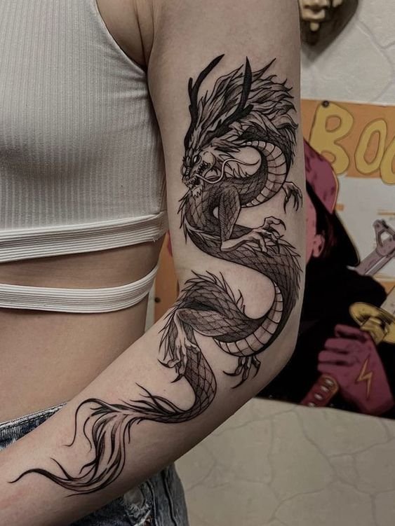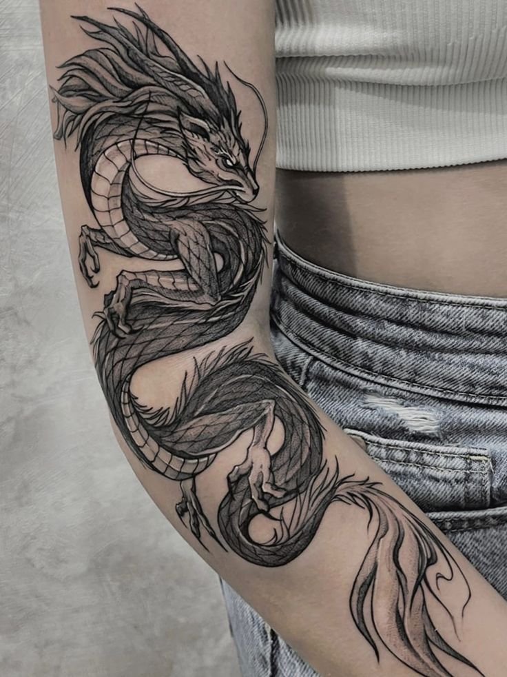 A dragon tattoo transcends mere adornment, embodying a potent emblem rich in personal or cultural significance.