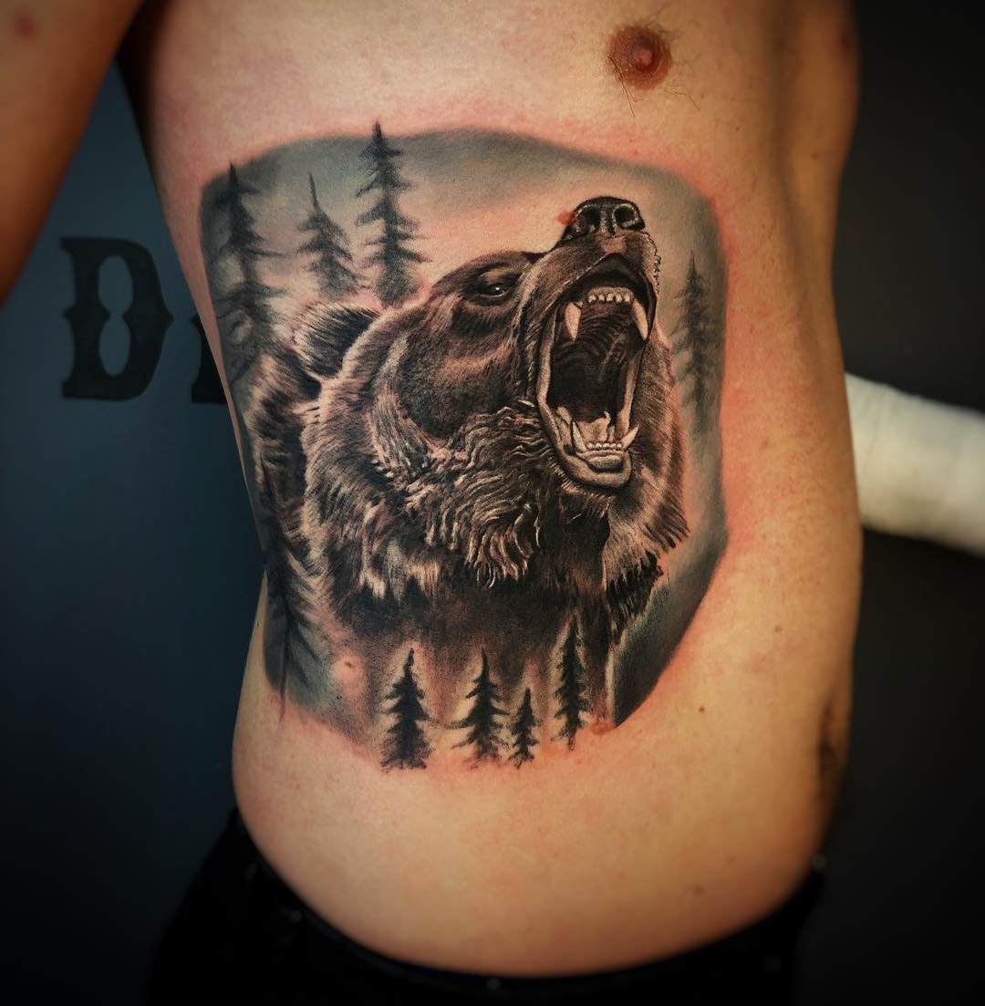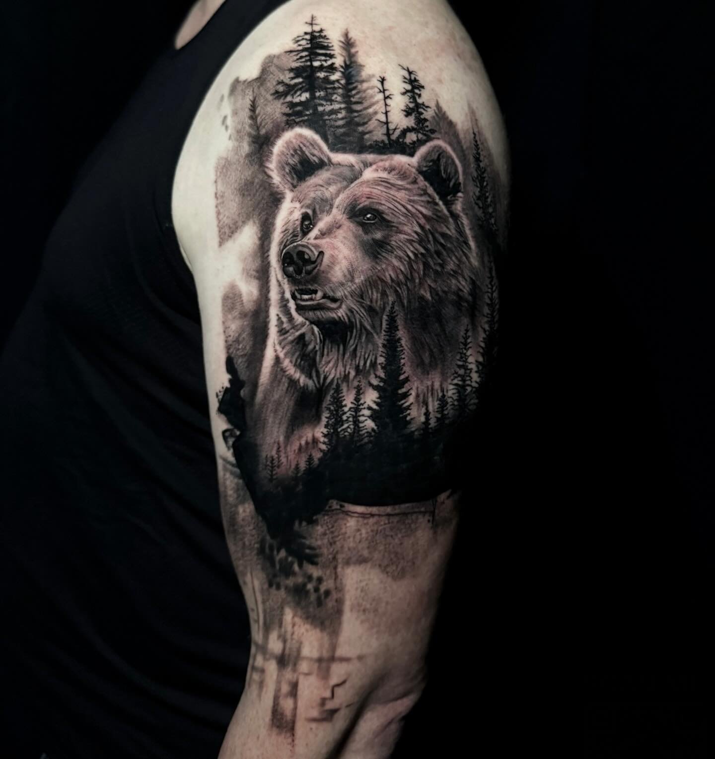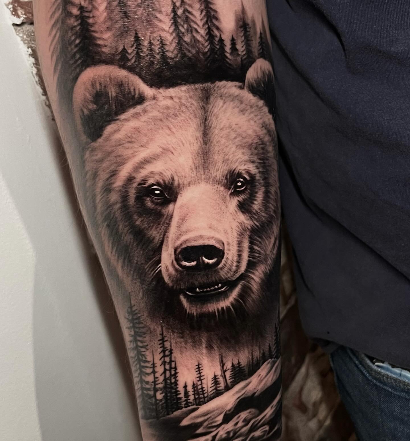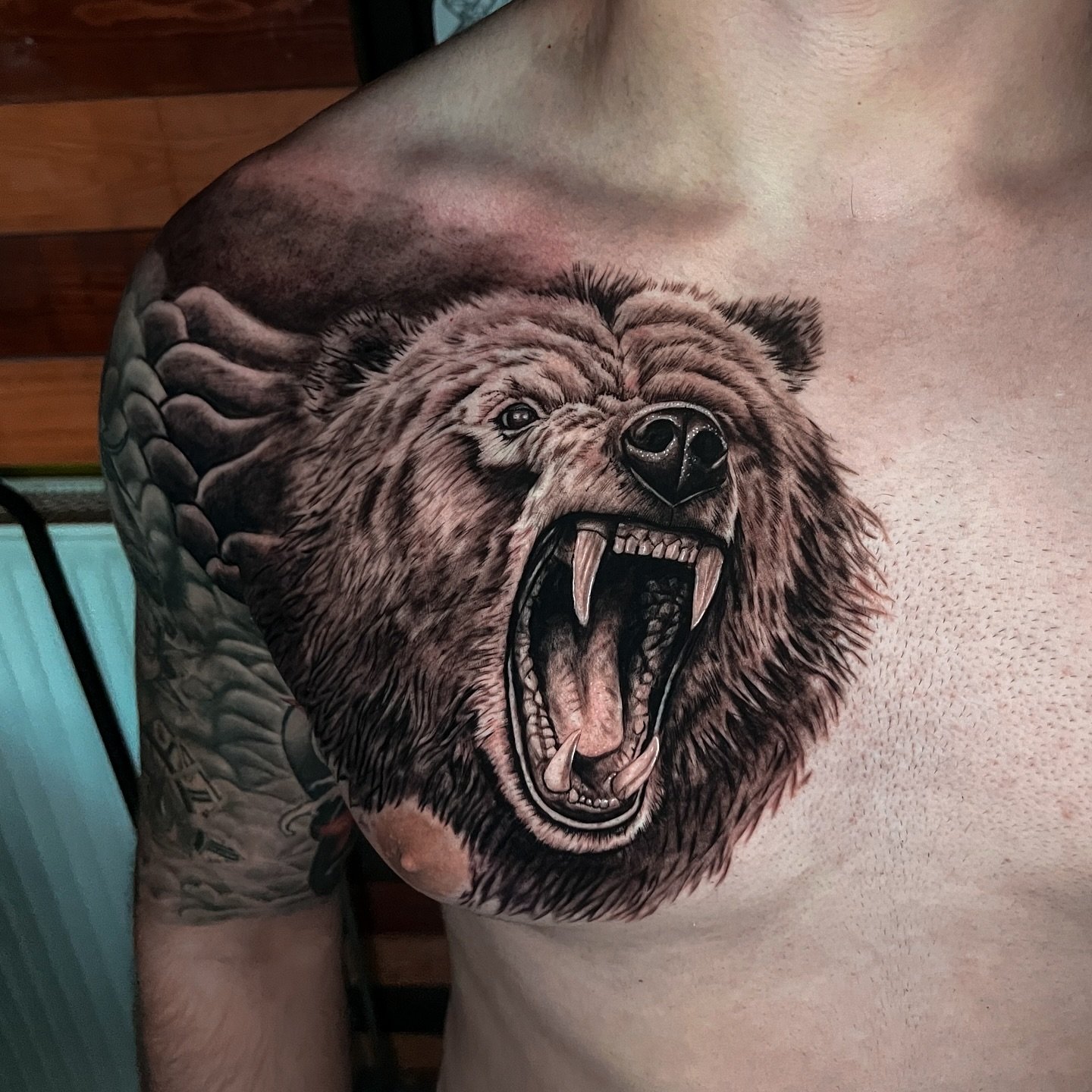 The choice of location for a bear tattoo depends on the size and detail of the design.