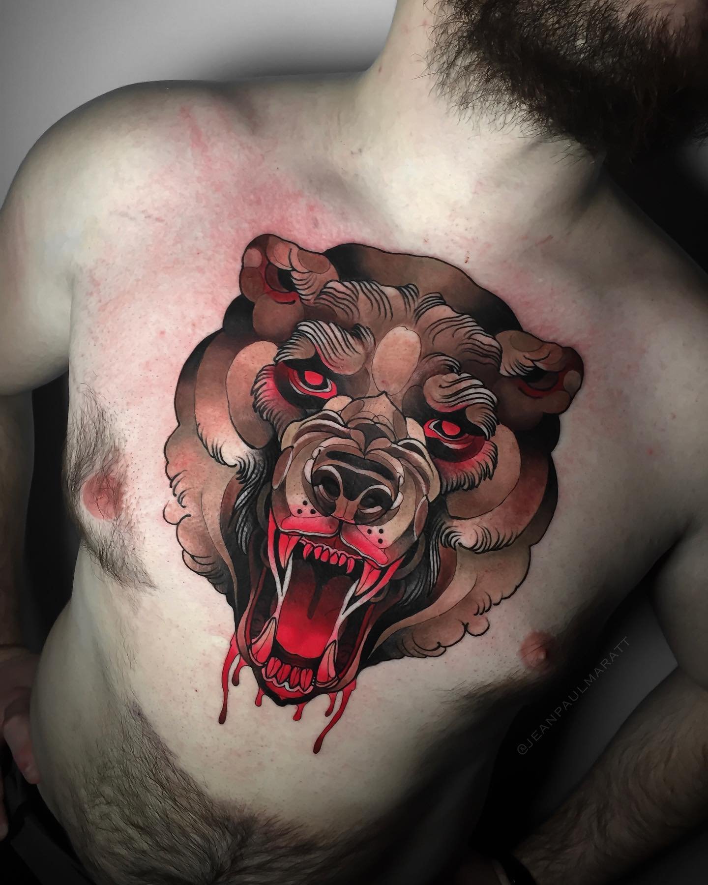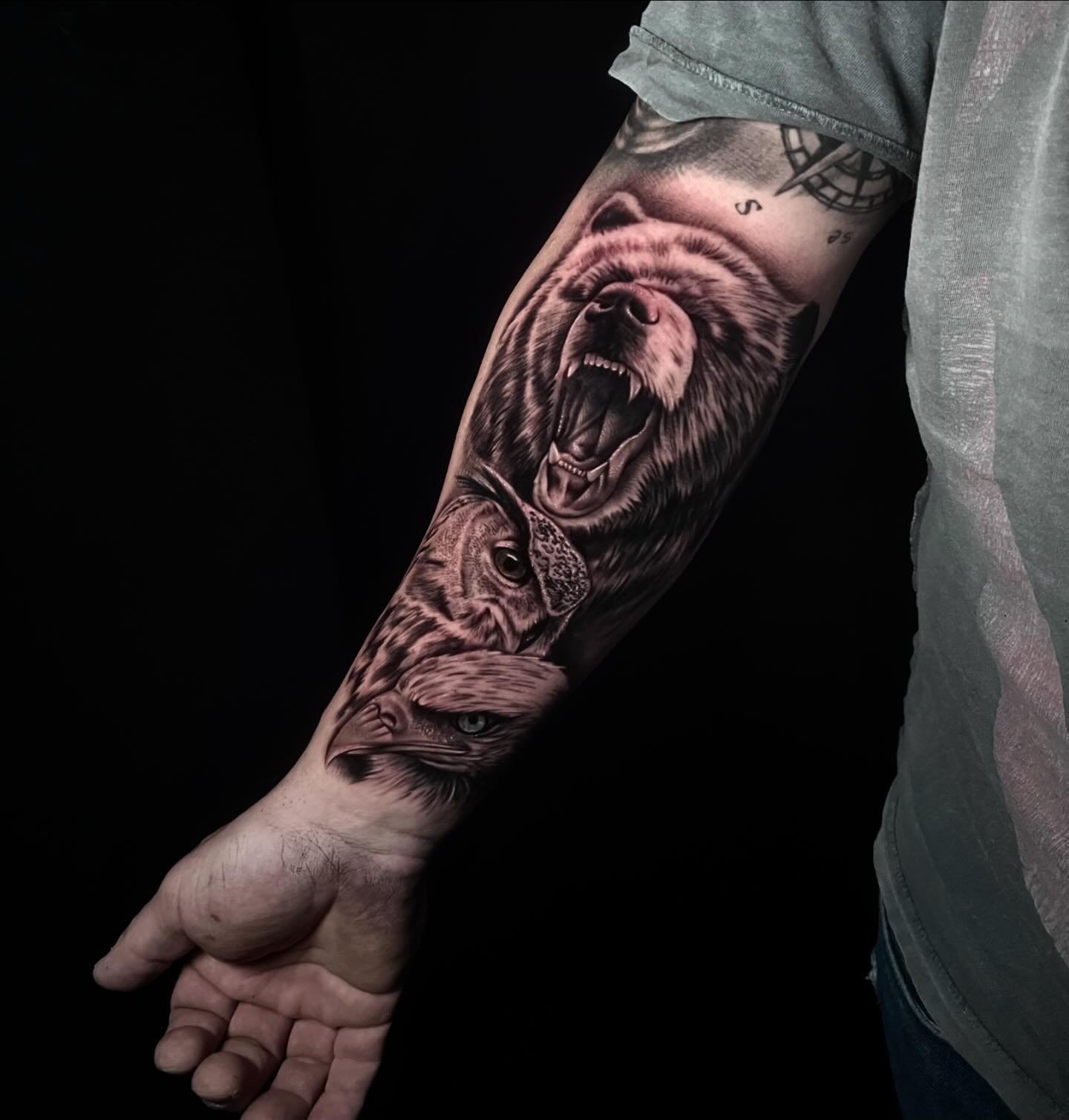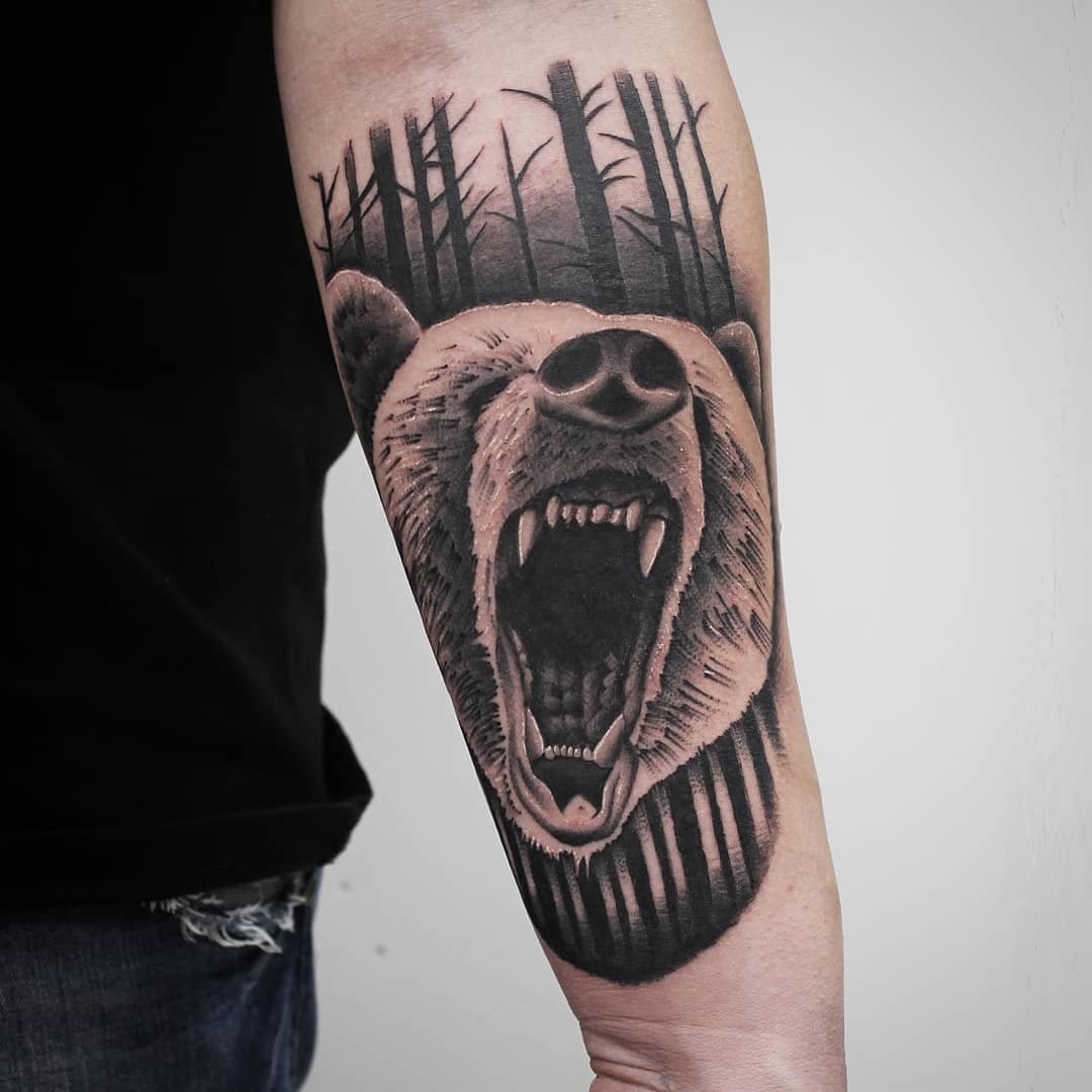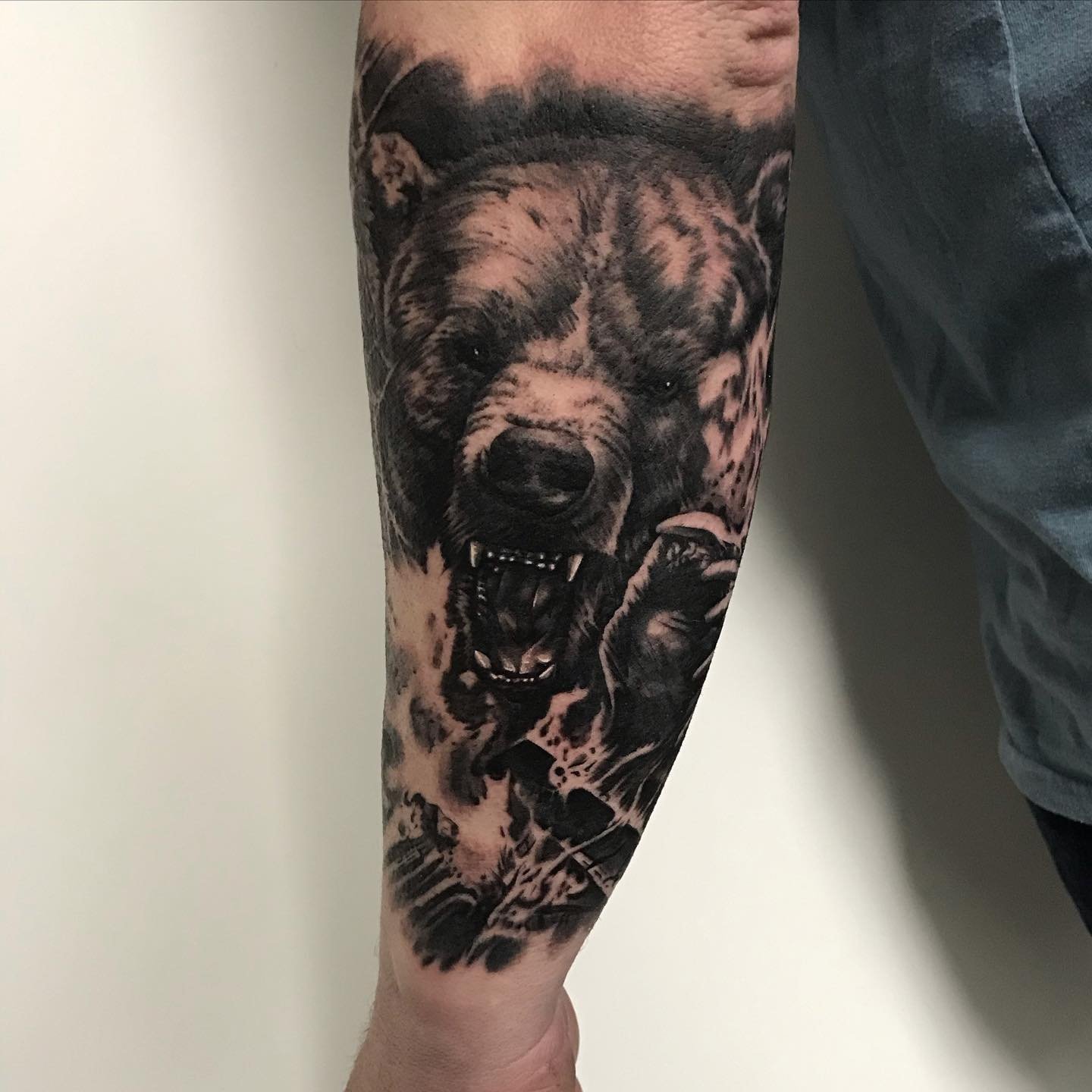 The choice of location for a bear tattoo depends on the size and detail of the design.