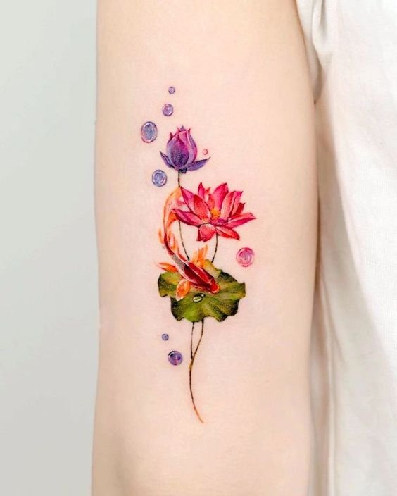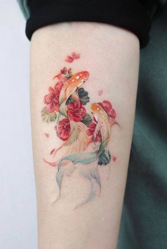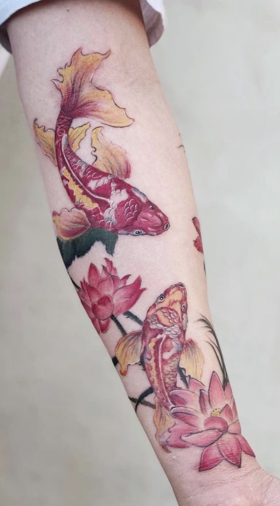- Japanese Style: Traditional Japanese koi fish tattoos often include elements of water, seaweed, and swirls. Colorful inks and detailed images give these tattoos a dramatic and impressive look.