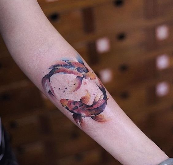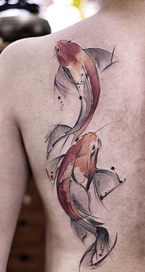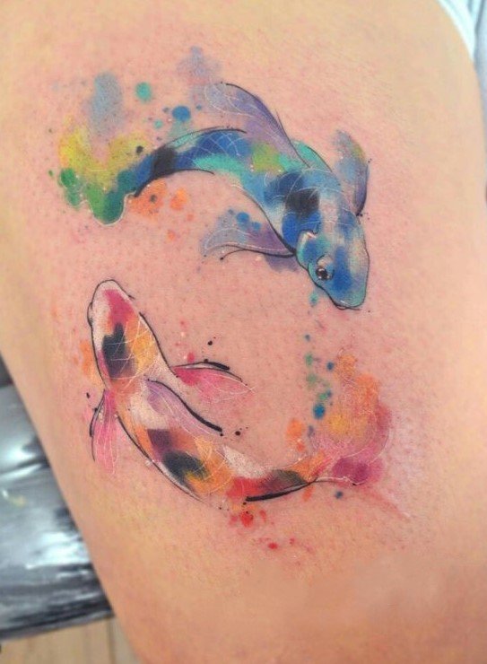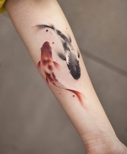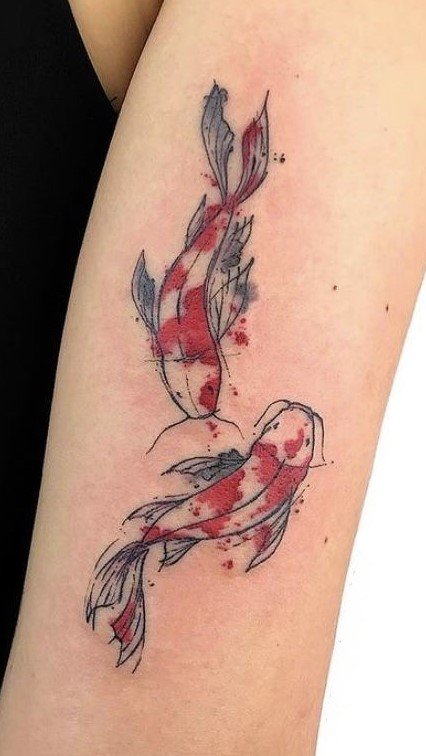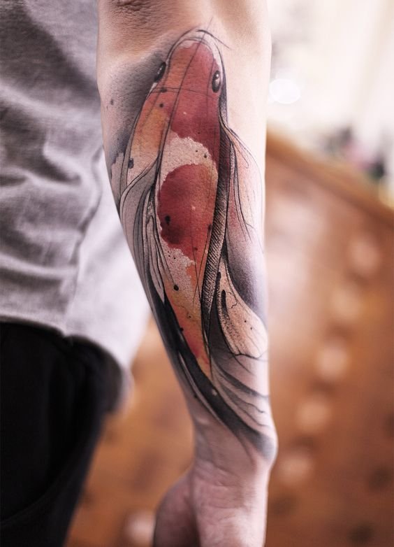 - Watercolor: Watercolor style tattoos make koi fish particularly picturesque, using shimmering shades and delicate color transitions, adding softness and airiness to the image.