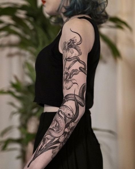 Snakes are often associated with renewal, thanks to their ability to shed their skin, as well as with wisdom, temptation, and protection. These unique creatures symbolize a multitude of contradictory qualities—from healing and apotropaic protection to evil and destruction. In various mythologies, the snake often acts as a guardian or protector of sacred places and objects, making it a popular choice for tattoos filled with deep meaning.