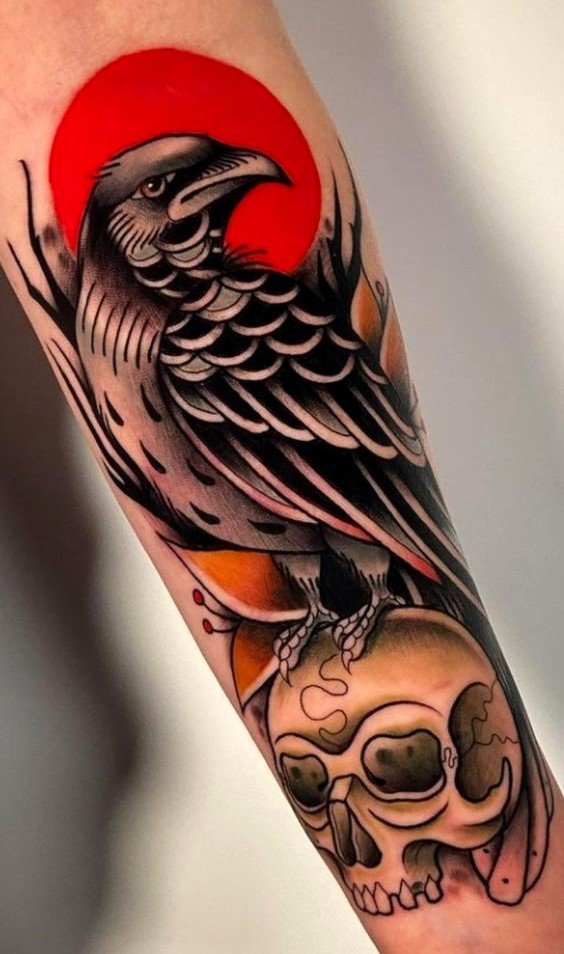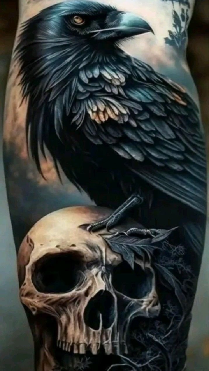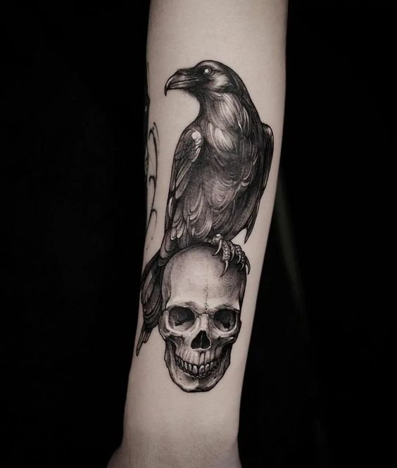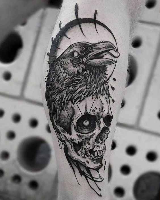 - Raven with a skull: represents a symbol of death and rebirth. Suitable for those who want to express their connection to the darker side of life and deep symbolism.