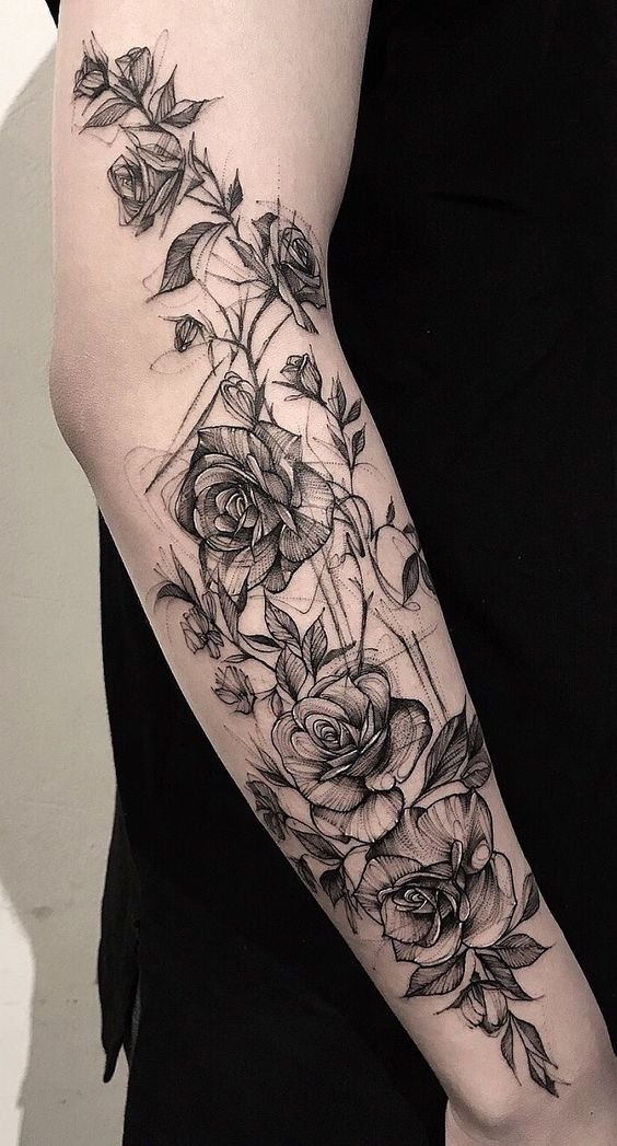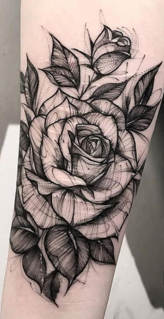 - Blackwork: Black-and-white rose designs exude elegance and simplicity, especially when combined with geometric elements.