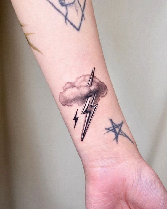 - Stormy Lightning: Adding storm clouds to a lightning tattoo creates a dramatic scene, symbolizing the power of nature and the calm after the storm.