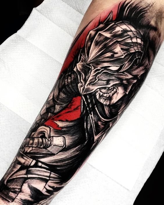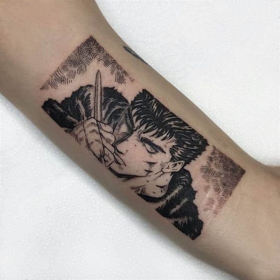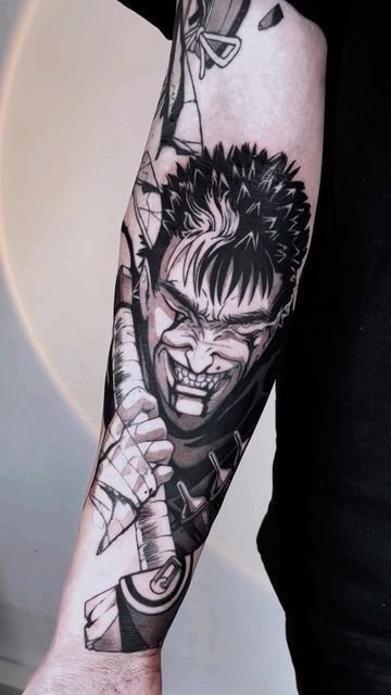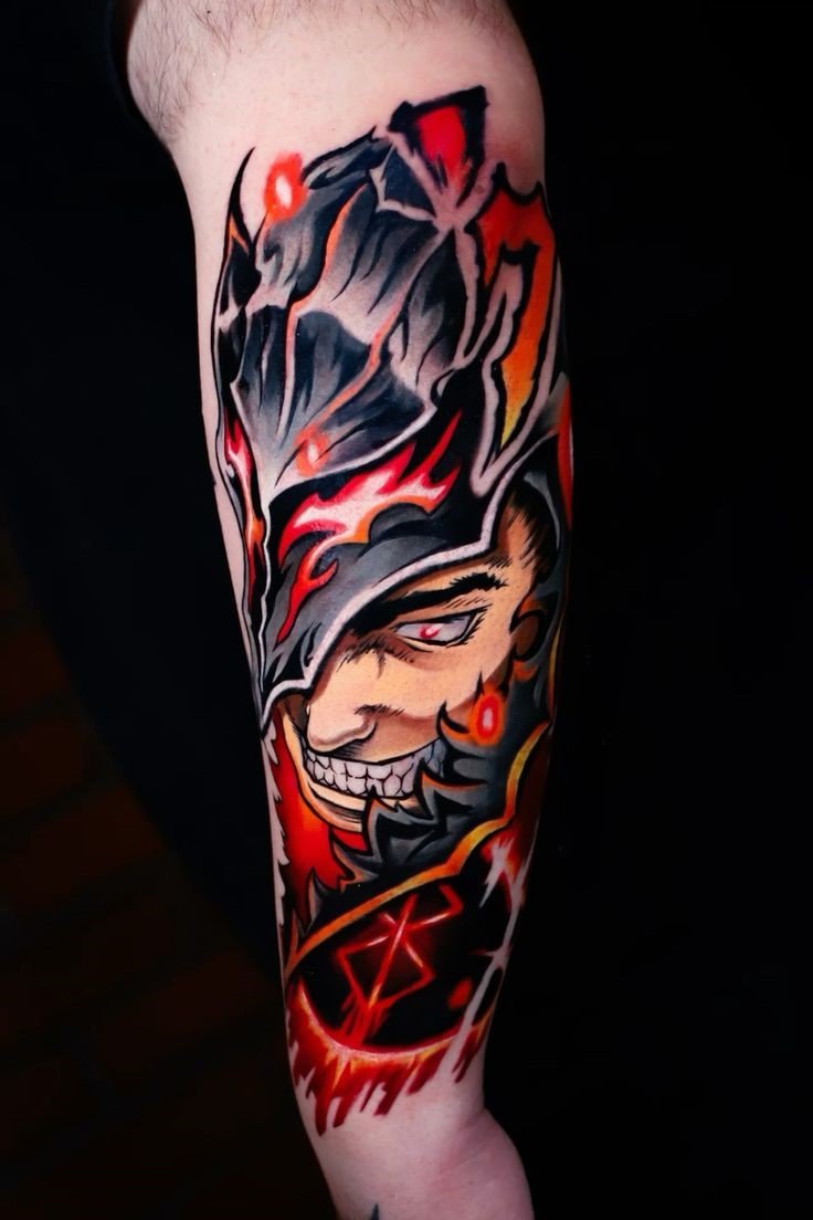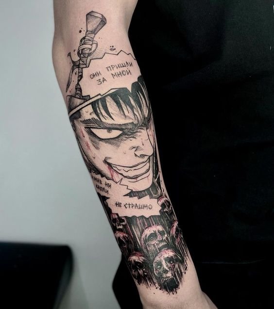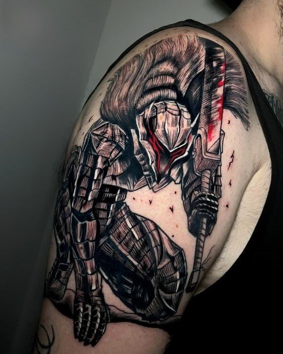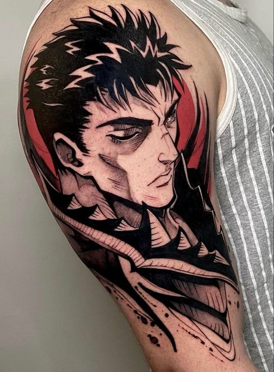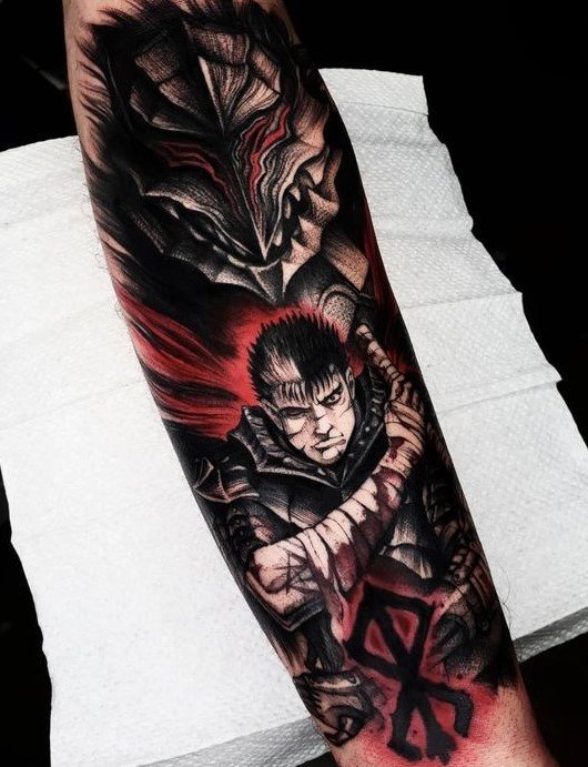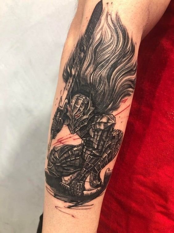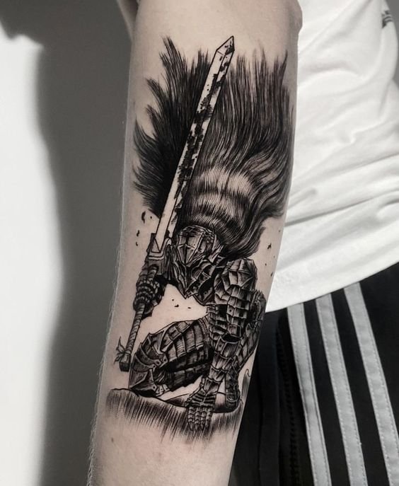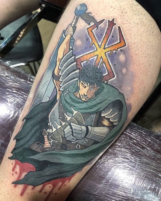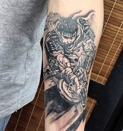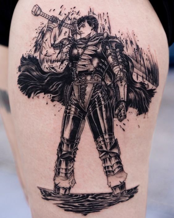 - Гатс - Черный мечник: Представь себе Гатса в полном боевом облачении, с его легендарным мечом, готового сразиться с любым врагом. Такая татуировка воплощает силу, решимость и неустрашимость.
