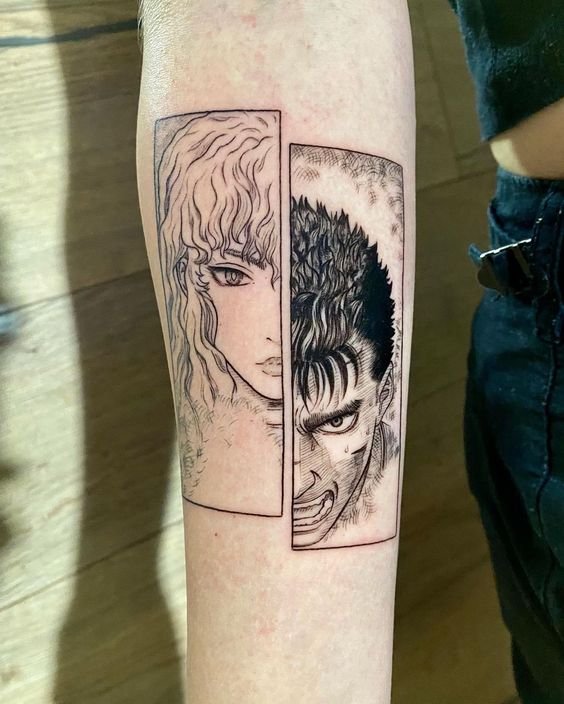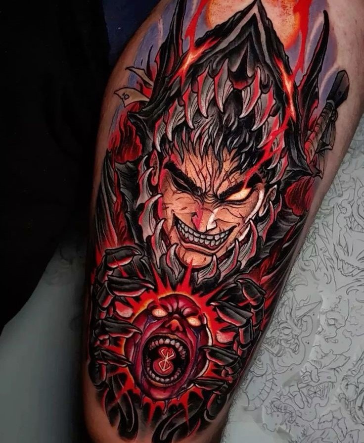 - Иконические образы: Гатс с его огромным мечом, загадочный Беэлит, харизматичный Гриффит - все эти образы идеально подходят для создания уникальных татуировок, которые сразу узнают фанаты.