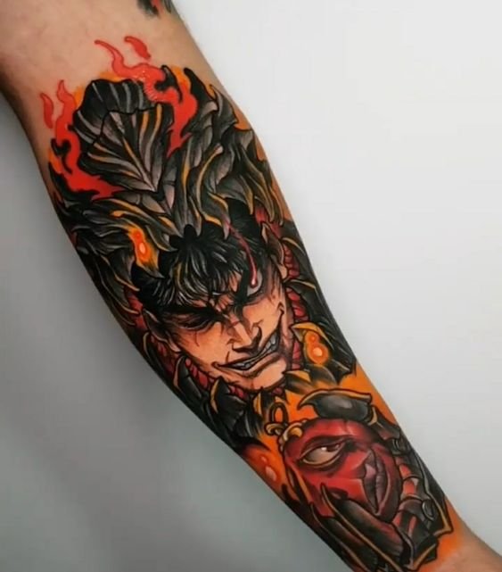 - Глубокая символика: "Берсерк" - это не просто аниме, это целый мир с богатой мифологией и сложными персонажами. Каждая татуировка по мотивам "Берсерка" несет в себе мощный символизм: борьба с внутренними демонами, преданность друзьям и стремление к свободе.