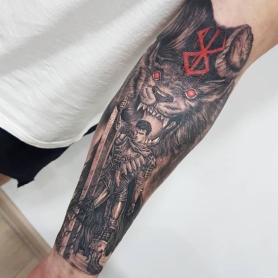 - Эпические битвы: Сцены сражений из "Берсерка" - идеальная основа для больших, детализированных татуировок, которые будут захватывать дух.