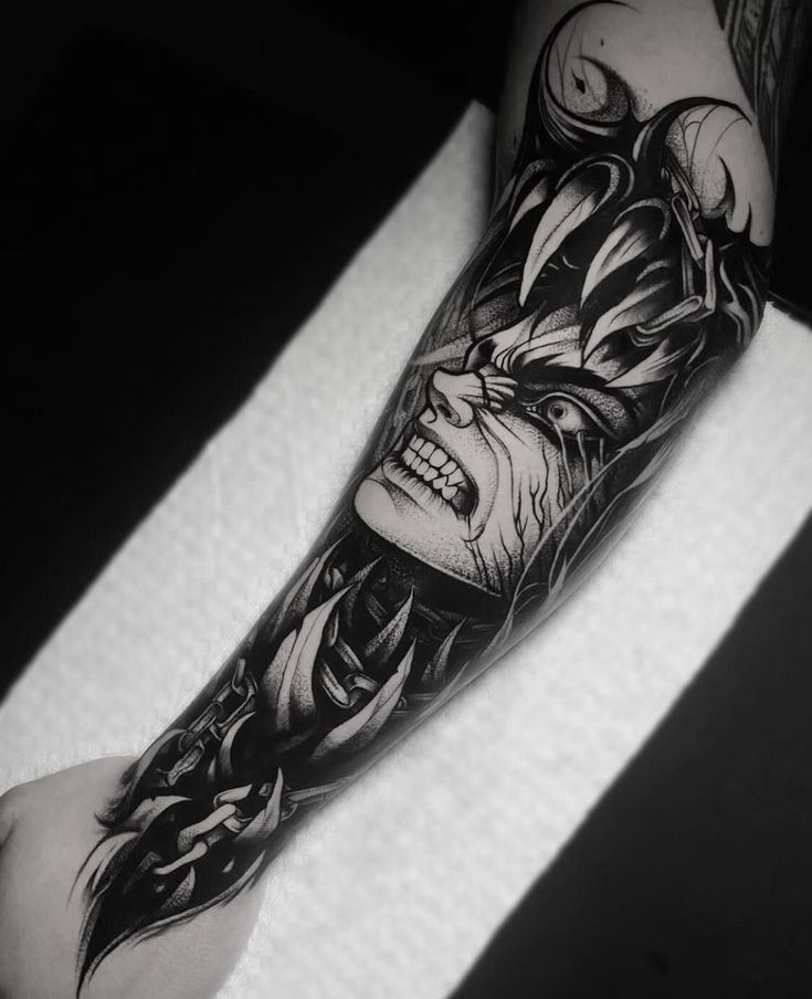 - Атмосферность: Тёмная и мрачная эстетика "Берсерка" прекрасно передается в татуировках. Это не просто тату, это целые истории, запечатленные на коже.