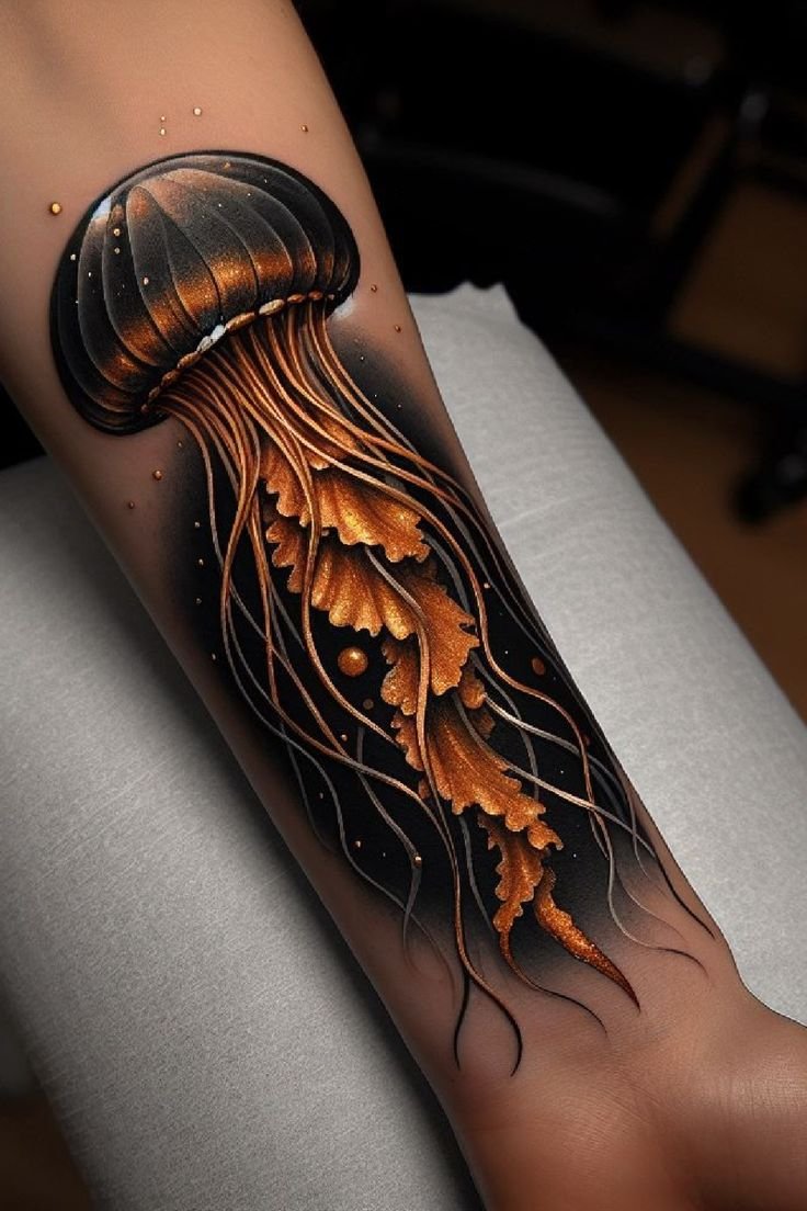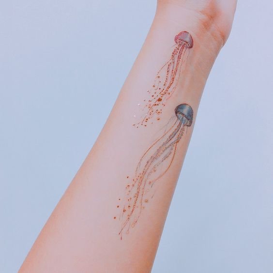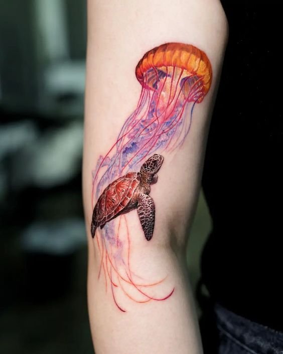 - Красота и грация: Медузы изящны и красивы в своем естественном обитании. Их прозрачные тела и плавные движения вдохновляют художников на создание настоящих шедевров на коже.