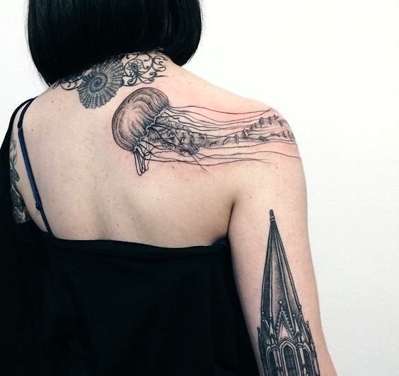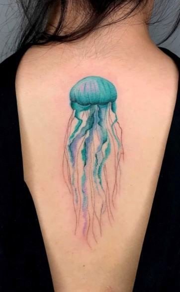 - Спина: Большая площадь позволяет воплотить самые смелые и детализированные идеи. Татуировка медузы на спине может стать настоящим произведением искусства.