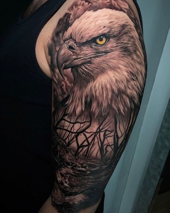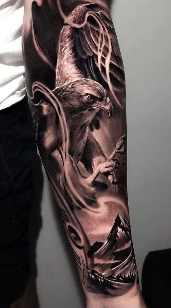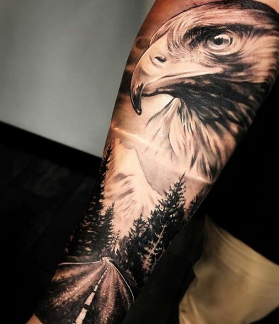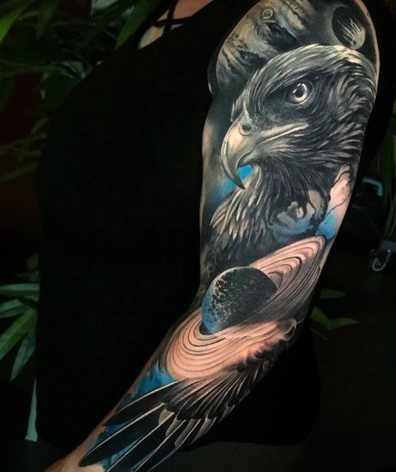 - Õlg ja käsivars: Ideaalne keskmise suurusega tätoveeringute jaoks, nagu kotka pea või lennus kotkas.
