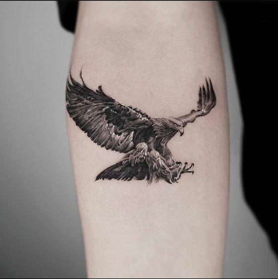 - Julgeolek ja otsustavus: Kotkas ei karda vaadata otse päikese poole, mis sümboliseerib kartmatust ja otsustavust. See lind ei tunne hirmu ohu ees ja on alati valmis võitluseks. Kotka tätoveering võib olla julgeoleku, vastupidavuse ja valmisoleku sümbol, et ületada kõik eluraskused. See näitab, et selle omanik on valmis seisma oma ideaalide eest ja kaitsma seda, mis talle kallis.