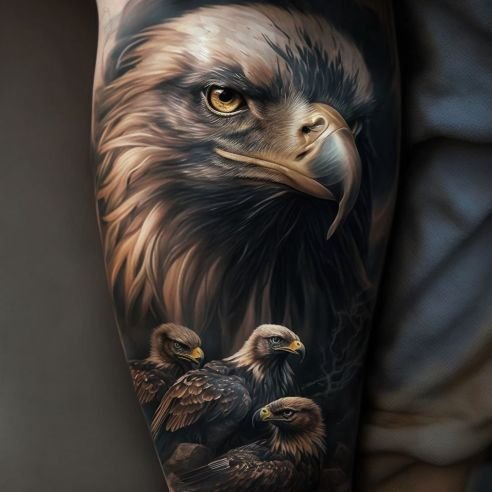 - Läbimõeldus ja tarkus: Kotkas on terava nägemisega, suutes märgata saaki suurelt kõrguselt. See oskus sümboliseerib läbimõeldust, tarkust ja võimet näha asjade olemust. Kotka tätoveering võib sümboliseerida oskust näha seda, mis on teiste silmade eest varjatud, ennustada tulevikku ja teha kaalutletud otsuseid.