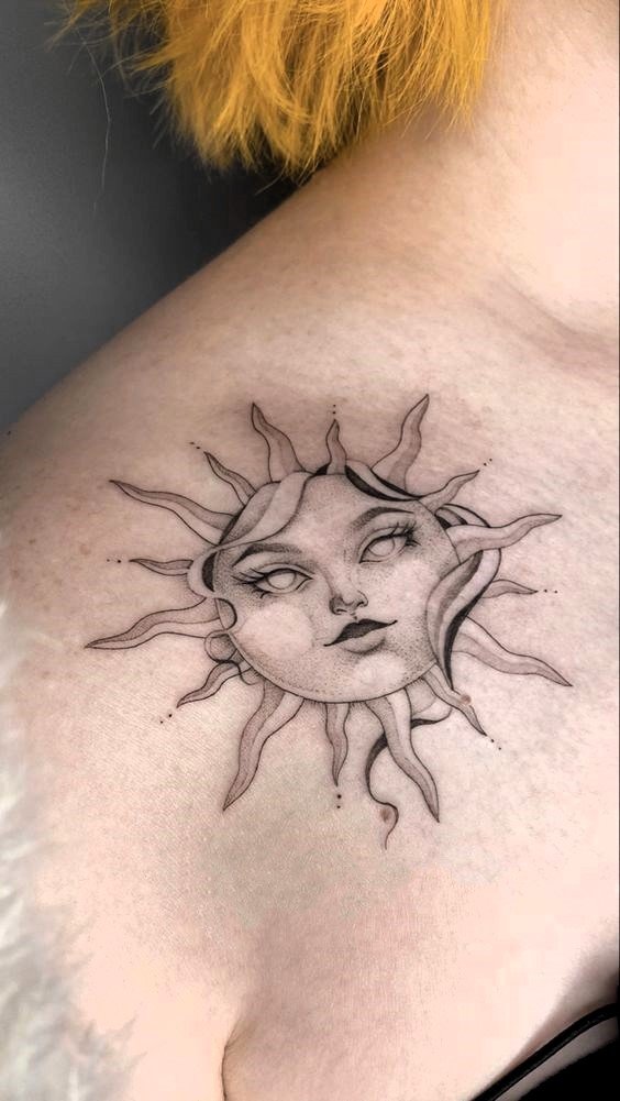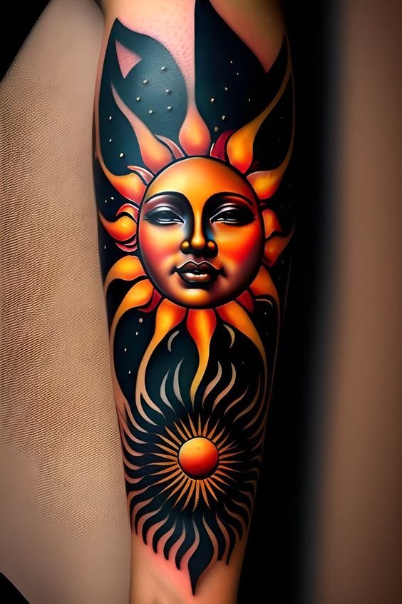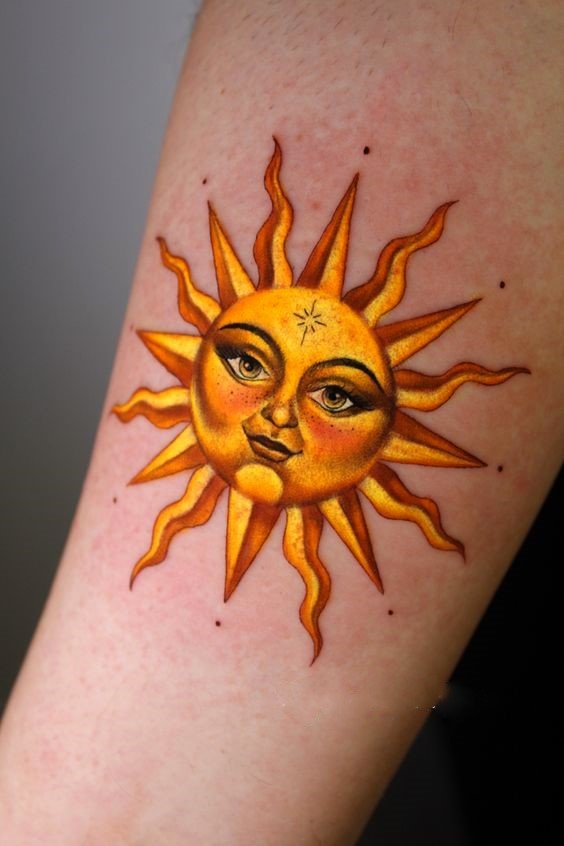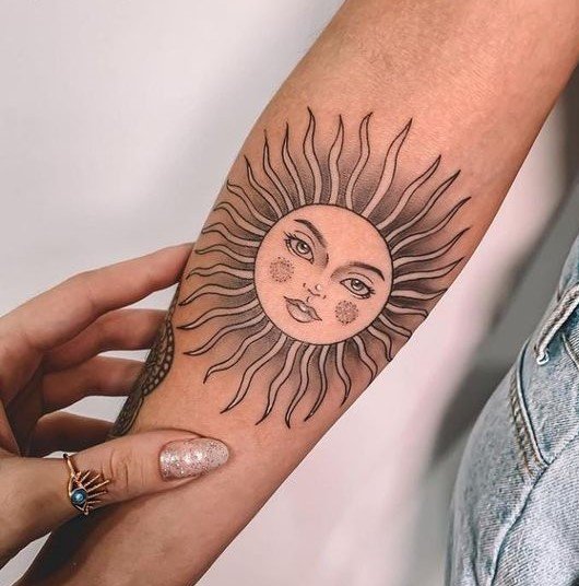 Päikesetätoveering pakub rohkelt loomingulisi võimalusi stiili valikul, millest igaüks lisab kujutisele unikaalse varjundi ja esteetika.