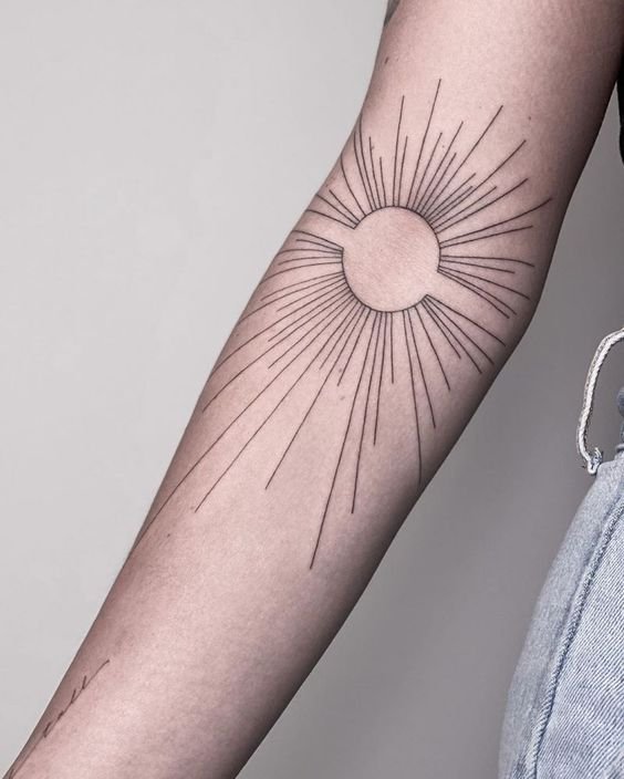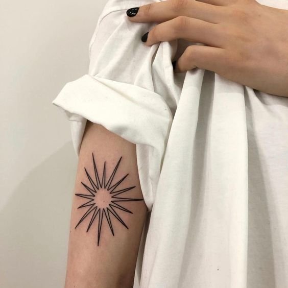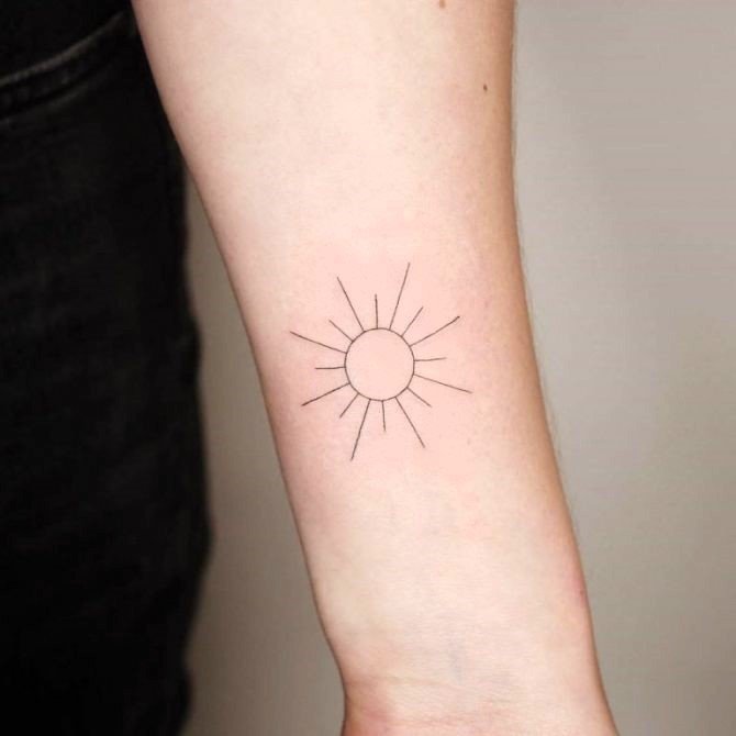 - Minimalism: Minimalistlikus stiilis on päike sageli kujutatud lihtsate joonte ja geomeetriliste kujunditena. Joonte puhtus ja liigsete detailide puudumine rõhutavad päikese sümboolset olemust, muutes tätoveeringu elegantseks ja vaoshoitud kaunistuseks, mis sobib harmooniliselt igasse välimusse.