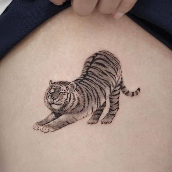 - Sümbolism: Määrake, mida täpselt soovite tätoveeringu kaudu väljendada. Tiiger võib sümboliseerida mitmeid omadusi ja iseloomujooni, sõltuvalt poosist ja kujutise stiilist. Kui soovite rõhutada oma jõudu ja võimsust, valige ründavas poosis, paljastatud kihvade ja pingul lihastega tiigri kujutis. Selline disain rõhutab teie otsusekindlust ja valmisolekut toime tulla kõigi raskustega. Kui teie jaoks on olulised tarkus ja rahulikkus, kaaluge puhkeasendis tiigri visandeid, näiteks istumas või lamamas. Selline kujutis edastab teie sisemist harmooniat ja võimet jääda rahulikuks ka keerulistes olukordades.