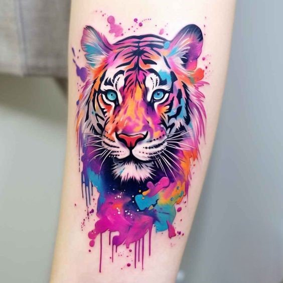 - Kaasaegne akvarellistiil: Kasutab pehmeid, sujuvaid värviüleminekuid, et luua akvarelli efekti. Erksad ja küllastunud värvid muudavad kujutise elavaks ja dünaamiliseks. Akvarellistiil sobib neile, kes soovivad lisada tätoveeringule kunstilisust ja loovust.